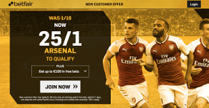 Having since enjoyed a comfortable triumph over Watford, Arsene Wenger’s men are expected to easily secure their place in the Europa League quarter-finals, and the good news is new Betfair customers who sign up through this link with promo code ZFBDMX are quoted 25/1 special price on Arsenal to qualify.