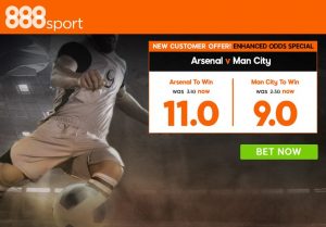 For this particular occasion, 888sport has prepared a special enhanced offer on either team to win so all of you who register an account via this link will be able to grab 10/1 (11.00) on Arsenal and 8/1 (9.00) on Manchester City to win.