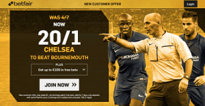 In order to qualify for the special price, you need to register an account here, enter promo code ZFBDGH and place a max £1 bet on Chelsea. All winnings paid as free bets. New Customer Offer, T&C’s Apply 18+. Please Gamble Responsibly.