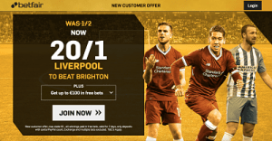 The Reds have raised their game of late, taking 13 points from last 5 matches, and you will be glad to hear that Betfair has enhanced the price on away win from 1/2 to 20/1 for their new customers.