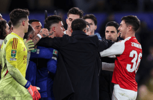 Kepa Arrizabalaga pushed Estevao’s drive wide as the game opened up late in the first half, while William Saliba curled onto the roof of the net at the other end.