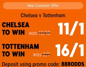 The tantalizing London Derby offers a great chance for all new customers to head over to 888sport and register an account using this link as there is a special offer waiting for them with 11/1 on Chelsea and 16/1 on Tottenham.