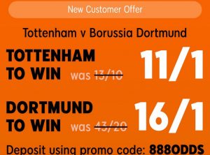 888sport still has them as underdogs at 16/1 betting odds in a new customer exclusive while Spurs can be backed at and enhanced odds worth 11/1. This offer is valid for new customers who register at 888sports through this link and deposit using promo code 888ODDS.