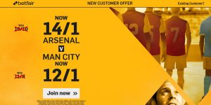 The Gunners need to win in order to keep their top-four chances alive and Betfair has them at enhanced 14/1 odds to do so in their special weekend offer. However, Manchester City travel to London on the back of a fine run of results and no wonder they are priced at 12/1 as another part of this double deal.