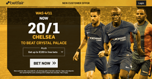 The Blues ended a bright run of results with a home loss to Man City, but they head into the game at Selhurst Park as clear favourites and you will be glad to hear that Betfair has enhanced the price on away win from 4/11 to 20/1.
