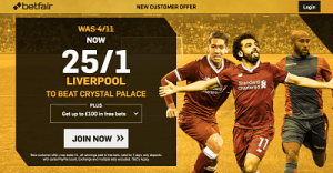 New Customers can get Liverpool at an enhanced 25/1 to beat C Palace. Max Stake £1. Winnings paid in free bets. Full T&Cs Apply. 18+|Gamble Aware.