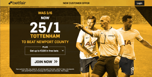Spurs have been enhanced to whopping 25/1 at Betfair despite being in really good form, so this is an offer you shouldn’t pass up if you have yet to register with the highly rated sports betting operator.