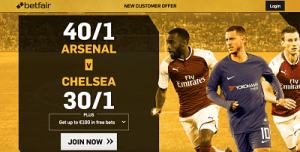 With both Arsenal and Chelsea ending lengthy winless runs at the weekend, it has to be noted that Betfair has enhanced the price on both home win (30/1) and away win (40/1) for all first time depositors.