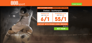 In order to qualify, simply sign up via this link with promo code 888ODDS, and place a max £5 bet on either Chelsea or Southampton. Extra winnings paid as free bets. New Customer Offer, T&C’s Apply, 18+. Please Gamble Responsibly.