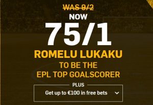 The Belgium international was given 9/2 betting odds at Betfair, but the good lads from this betting operator have decided to boost the price with Lukaku now standing at whopping 75/1.