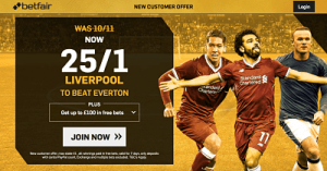New Customers can get Liverpool at an enhanced 25/1 to beat Everton. Max Stake £1. Winnings paid in free bets, valid for 7 days, only deposits with cards/Paypal count. Exchange and multiple bets excluded. T&C’s Apply. 18+|Gamble Aware.