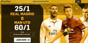 Betfair have prepared a special betting exclusive with 25/1 betting odds on Los Blancos and whopping 60/1 on heavily reinforced underdogs from the Premier League, who would not have appreciated to be so undervalued.