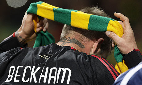 The Glazer family’s ownership of United led to a ferocious and sustained protest from United supporters last season which was apparently supported by David Beckham when he donned a green and gold scarf, the symbol of the protest, after playing at Old Trafford for Milan.