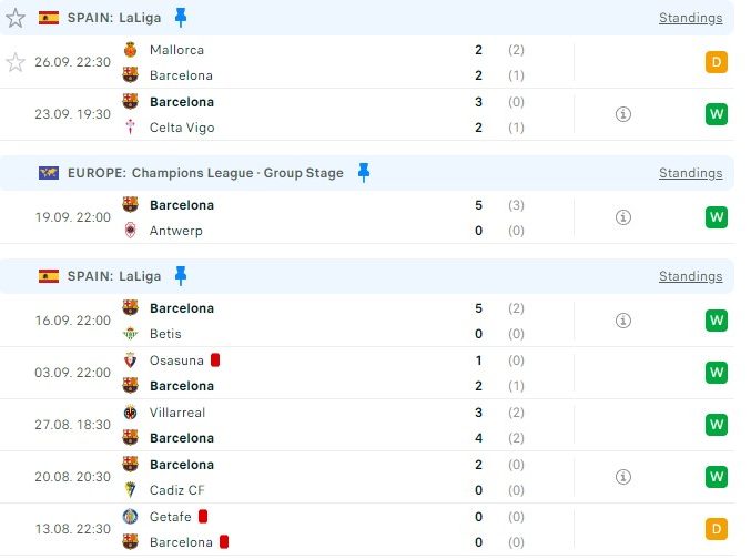 If we look at the 1st screenshot we can notice Barcelona’s form trend. After a disappointing stalemate at Getafe in the opening round, Barca found their rhythm and scored in every single match.