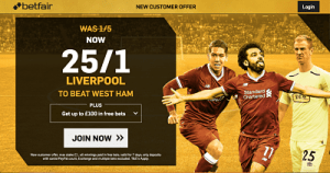 The Hammers did well to stay above the relegation zone as they defeated Watford last time out, but they will have bigger fish to fry on Saturday afternoon. That is why you should know that Betfair has enhanced the price on home win to 25/1.