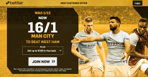 The Hammers slipped to the relegation zone after failing to win any of their last seven Premiership matches and you will want to know that Betfair has enhanced the price on home win to 16/1.