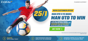 Having won three of their last four games, scoring 12 goals in the process, the Red Devils can now be backed at 25/1 enhanced odds at Coral, which seems like an offer too good to miss out on.