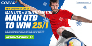 Jose Mourinho’s side will be hoping to finally return to winning ways when they face out-of-sorts Southampton and you should know that Coral has enhanced the price on home win to whopping 25/1.