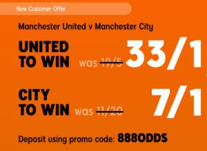 888sport has them as favourites at 7/1 betting odds to win at Old Trafford in the special new customer offer. Players who open an account through this link here and make a minimum £10 deposit using promo code 888ODDS will be able to claim this enhanced offer.