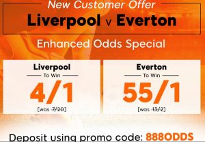 New customers who open their account with 888 sport using this link and a promo code 888ODDS will be offered an enhanced odds special of 4/1 on Liverpool and 55/1 on Everton to win the Merseyside derby.