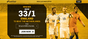 England, on the other hand, have booked their ticket, but given their record at past major tournaments, they will want to reach the finals in the best possible mood, so bear in mind that new Betfair customers who register via this link are quoted special price of 33/1 on away win.