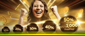 Make every deposit with the code GOLDRUSH, wager it three times and collect your FreePlay. The first deposit will get you 10% up to €200 FreePlay, the second comes with 20% up to €400 FreePlay. The third will bring 30% up to €700 FreePlay and the fourth is worth 40% up to €1,200 FreePlay. As for the fifth, gamers will pocket 50% up to €2,000 FreePlay. Repeat the process five times and you can get up to €18,000 FreePlay. Click here and visit 888 Casino for more information. Remember that the promotion will be active only until 19th September.