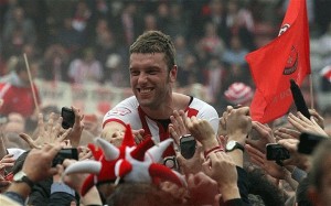 Rickie Lambert has been outstanding this season scoring 31 goals, as Southampton completed their second successive promotion. Lambert’s goals have guided his team to the unexpected position of second in the Championship.
