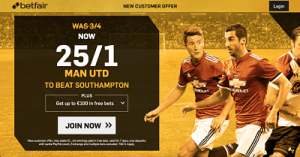 Premier League leaders Manchester United, on the other hand, are showing no signs of slowing down and you will be glad to hear that Betfair has enhanced the price on away win from 3/4 to 25/1.