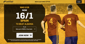 And while Albania showed some improvement to take seven points from last three fixtures, they will find it hard to match the star-studded La Furia Roja, so bear in mind that Betfair has enhanced the price on home win to 16/1.