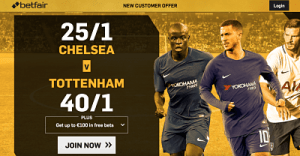 Spurs, on the other hand, can make a giant step towards a top 4 finish, so it is important to note that new Betfair players signing up through this link can back Chelsea at 25/1 or Spurs at 40/1 enhanced price.