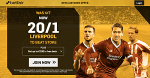 The Reds missed a perfect opportunity to make it four wins in a row and return to Champions League positions last weekend, but they can now be backed at 20/1 special price to defeat the Potters.