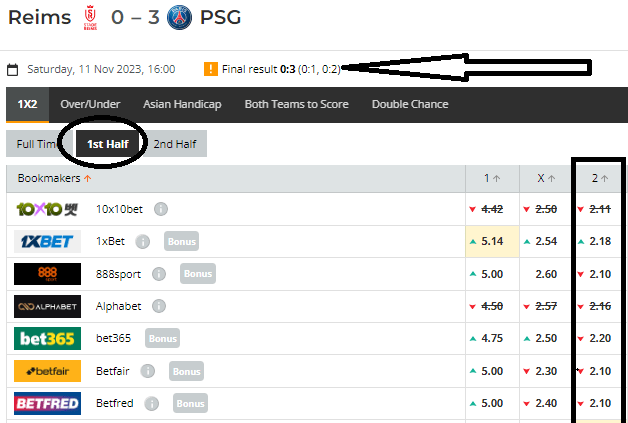 Top of the table PSG travelled to 7th placed Reims in a difficult fixture predicted by the bookies. However, the current champions have dominated the game from start to finish. Mbappe & Co took the lead in the 1st half, just to kill the match with another 2 goals scored in the 2nd act. The bookmakers gave us a golden opportunity to exploit the halftime market (average odds 2.16 for PSG to lead).