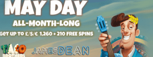 Three promotional codes can be used for three different offers. Fist code, 50FS can be used when you make a deposit of $50, and you will immediately get 50 Free Spins for Taco Brothers. Deposit $20 using the code 20FS and you will receive 20 Free Spins for James Dean. If you are more into Bonus cash, then make a deposit of minimum $20 with the code MAY and receive a 35% Bonus up to $420.
