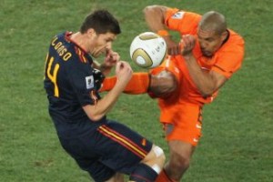 It seems to me that the criticism of Howard Webb, of whom I am by no means the biggest fan, is a little unfair. His worst mistakes seem to have been giving a goal kick that should have been a corner and not sending off four Dutch players and two Spaniards. Would we really have wanted a final played nine against seven?