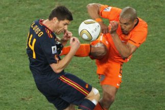 In the second half, again, he probably should have sent off Van Bommel and Iniesta. If he deemed the Puyol challenge on Robben as a foul when Robben was clean through then he should have gone as well. He had no choice but to dismiss Heitinga.