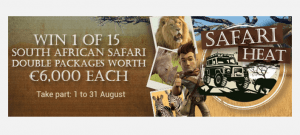 If you ever wanted to visit South Africa and see the beautiful but deadly animals that dwell in the wilderness of this African country, then this is a perfect promotion for you, since the main prize is a proper South African Safari for two! Fifteen lucky gamers will pocket this fantastic package for two, which is valued at €6,000 each.